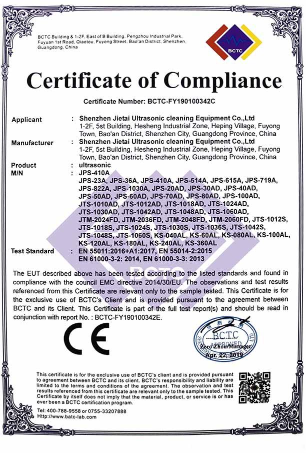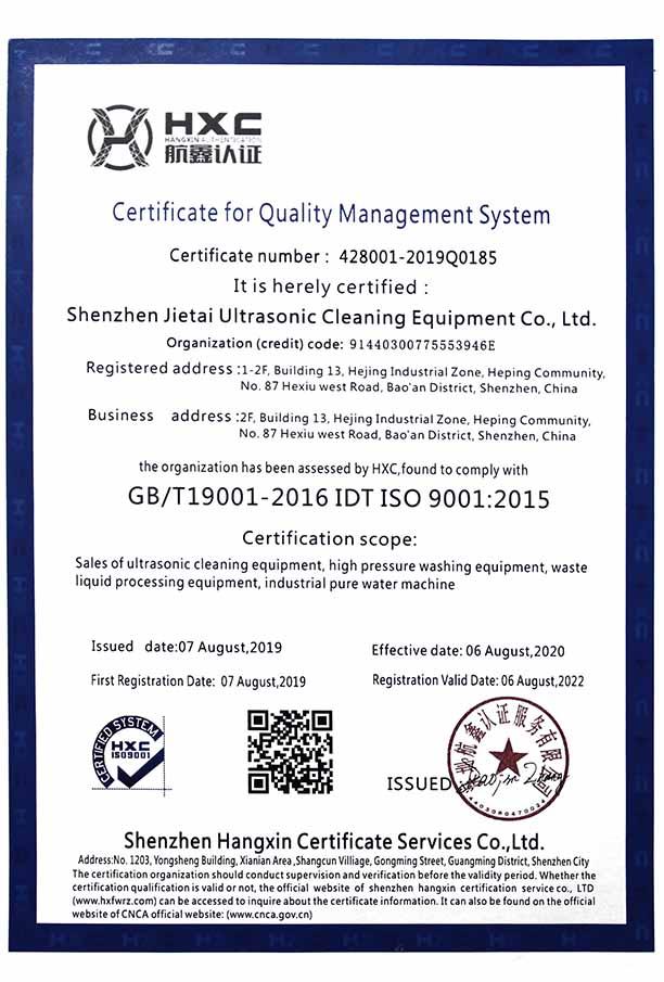 ? ? ? 公司全面實行嚴(yán)格的ISO9001:2008質(zhì)量體系管理,以創(chuàng)新著稱而躋身行業(yè)前列,所開發(fā)生產(chǎn)的各種超聲波清洗設(shè)備,先后通過CE、FCC、ROHS、等認(rèn)證,產(chǎn)品專利達(dá)50多項,技術(shù)達(dá)國際同類產(chǎn)品先進(jìn)水平。