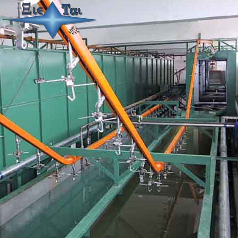 懸掛鏈?zhǔn)斤w輪輪轂超聲波、噴淋清洗烘干設(shè)備由懸掛輸送鏈條、驅(qū)動(dòng)裝置、張緊裝置、超聲波清洗、噴淋清洗、過水槽、切水系統(tǒng)、烘干系統(tǒng)、管路系統(tǒng)、過濾系統(tǒng)、自動(dòng)溫控裝置、總電氣控制、底盤和機(jī)架等部份組成.各槽體間加裝不銹鋼接水盤,避免汽車輪轂/飛輪在移動(dòng)過程中將水滴落地面。